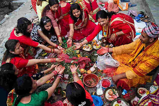ऋषिपञ्चमीका अवसरमा राजधानीका नदी किनारमा स्नान गर्ने महिलाको भीड