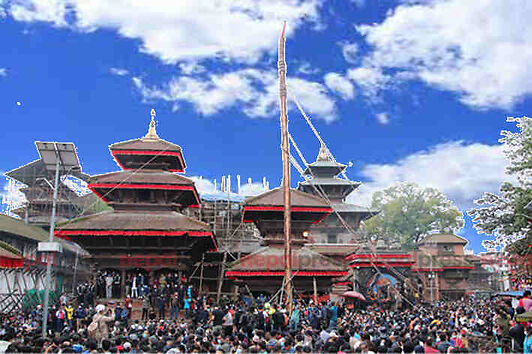 ध्वजासहितको लिङ्गो ठड्याएर इन्द्रजात्रा सुरु हुँदै
