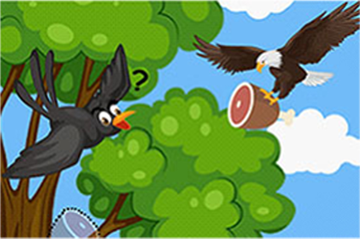 एउटा जङ्गलमा एउटा काग बस्थे । उ धेरै लोभी थियो र सधैं अरूको मामिलामा हस्तक्षेप गरिरहन्थे । त्यसैले जंगलमा कुनै पनि जनावर वा पंक्षीले उहाँलाई मन पराउँदैन । एक दिन कागले भुइँमा मासुको टुक्रा भेट्टायो । उसले तुरुन्तै यसलाई आफ्नो चुच्चोमा समात्यो र रूखको टुप्पोमा उड्यो ।