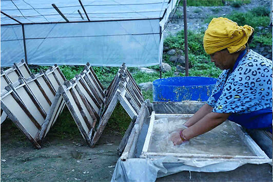 “दरवाङ थापाचौर र तमानखोलाको नेपाली कागज उद्योगका लागि आवश्यक कच्चा पदार्थ लोक्ता सङ्कलन गर्न वन समूहको कार्ययोजनाअनुसार १५ वर्षपछि खुला गरिएको छ”, उहाँले भन्नुभयो, “फुर्सदको समयमा जङ्गलको लोक्ता सङ¬्कलन गरेर उपभोक्ताले आम्दानी गरेका छन् ।” यसअघि मालिका–३ अदिभारामा रहेको मालिका हातेकागज उद्योग गत भदौमा थापाचौरमा स्थानान्तरण गरी पुनःसञ्चालन भएपछि लोक्ता बिक्री हुन थालेको हो । उद्योग बन्द हुँदा जङ्गलमा लोक्ता खेर गइरहेको थियो । म्याग्दीमा हाल उक्त हातेकागज उद्योग मात्र सञ्चालनमा छ । पाखापानी र लमसुङमा रहेको हाते कागज उद्योग बन्द छन् । नागीको उद्योग आंशिक रूपमा सञ्चालनमा छ । माघदेखि वैशाखसम्म लोक्ता निकाल्ने गरिएको बासराते सामुदायिक उपभोक्ता समूह जेमका अध्यक्ष सतप्रसाद पुनले बताउनुभयो । कागज उद्योग सञ्चालन भएपछि लोक्ताको सदुपयोग भएको उहाँले बताउनुभयो । जङ्गलमा गाईवस्तु चराउने क्रममा गोठालाहरूले लोक्ता सङ्कलन गर्छन् । बराहताल, बासरातेलगायत मालिका गाउँपालिकाको २, ३, ४ र ५ नम्बर वडाका सामुदायिक वन समूहका ८५ जनाबाट मालिका कागज उद्योगले यस वर्ष चार हजार किलोग्राम लोक्ता खरिद गरेको सञ्चालक मोतिराज गौतमले बताउनुभयो । “एकजनाबाट अधिकतम रु ३० हजारसम्मको लोक्ता खरिद भएको छ”, उहाँले भन्नुभयो, “एक जनाले सरदर रु १० देखि १५ हजारका दरले आम्दानी गरेका छन् ।” समुद्री सतहबाट तीन हजारदेखि तीन हजार पाँच सय मिटर उचाइको जङ्गलमा पाइने अर्गेलीको लोक्ता प्रशोधन गरेर नेपाली कागज तयार पारिन्छ । सुकेको लोक्तालाई एक हप्तासम्म पानीमा भिजाउने, पकाएर बनेको लेदोलाई आवश्यकतानुसार विभिन्न आकारको जाली भएको फ्रेममा राखेर घाममा सुकाएपछि नेपाली कागज तयार हुन्छ । नेपाली कागजमा लेखेको अक्षर नउड्ने भएकाले लामो अवधिसम्म रहने अभिलेख प्रिन्ट गर्न प्रयोग हुन्छ । अदालत, प्रहरी, प्रशासन, स्थानीय तह, सहकारी, बैंक, वित्तीय संस्थाहरूले महत्त्वपूर्ण प्रतिवेदन, अभिलेख र निर्णय तथा पत्रका लागि नेपाली हातेकागज प्रयोग गर्छन् । समुदायस्तरमा चिना, तमसुक लेख्न पनि नेपाली कागज प्रयोग गर्ने चलन छ । म्याग्दीमा उत्पादन हुने नेपाली कागज जिल्लाभित्रका साथै, बागलुङ, कास्की र काठमाडौँमा खपत हुने गरेको छ । आकार र तौलअनुसार फरक–फरक मूल्यमा कागज बिक्री हुन्छ । सबैभन्दा कम चार दशमलव पाँच ग्रामको एउटा कागजको साढे चार रुपैयाँ पर्छ । रासस