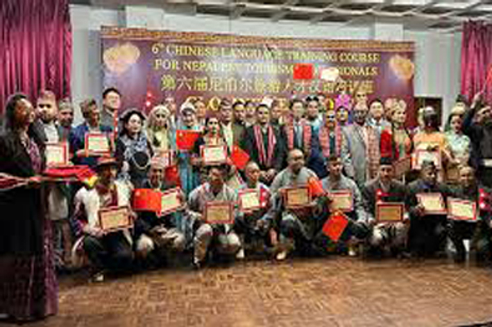 काठमाडौँ, २ पुस : नेपाली पर्यटन व्यवसायीलाई चिनियाँ भाषाको प्रशिक्षण दिइएको छ । नेपाल पर्यटन बोर्ड, नेपालस्थिति चिनियाँ दूतावास र नेपाल चीन संस्कृतिक तथा शैक्षिक परिषद्को संयुक्त आयोजनामा छ महिने प्रशिक्षण दिइएको हो । यही पुस १ गते सम्पन्न तालिममा नेपालका पर्यटन व्यवसायीलाई चिनियाँ पर्यटकसँग थप प्रभावकारी रूपमा जोड्न र सेवा दिन सक्षम बनाउने उद्देश्यले प्रशिक्षण सञ्चालन गरिएको बोर्डले आज विज्ञप्तिमार्फत जनाएको छ ।
